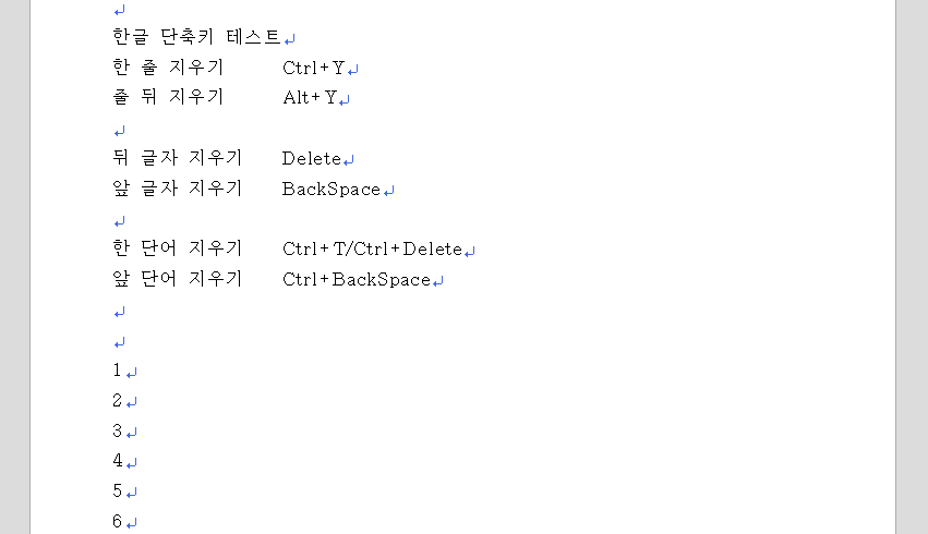 아래아 한글 한줄(현재 라인) 삭제 단축키(Ctrl + Y)